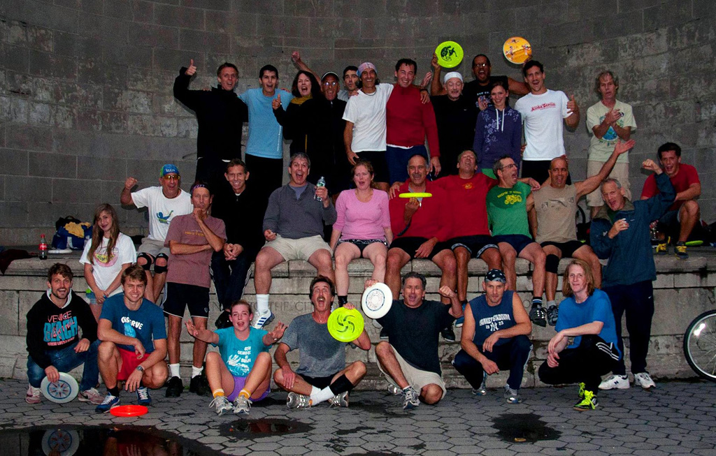 These were the ones I was able to write down, and doubtless some were missed. At one point there we four separate minimum 4-player Jams going on at once. It was really amazing to stand up on the bandshell stage, seeing the space filled with Jammers and flying Stylers. My memory of play is a blur of Hein Highlights–flash images of people and plastic in motion, with lots of joyful noise echoing all around. All under the watch eye of the NYPD. Seriously. There was one lonely cop in a three wheeler who watched us for almost an hour. Their new motto must be Courtesy, Professionalism, Respect…and Shredding!