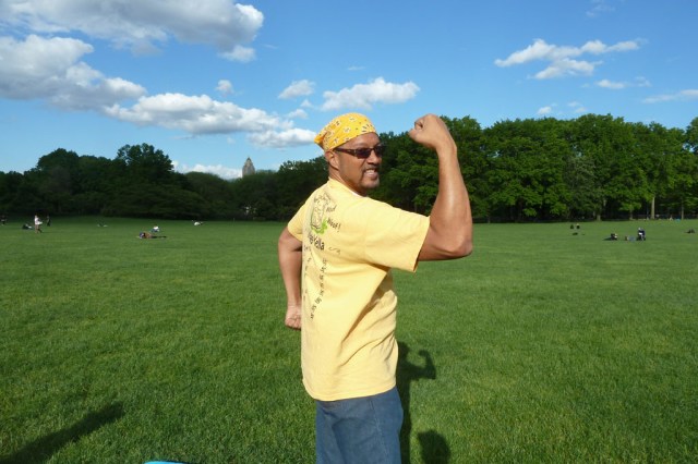 It was a very nice day when I arrived at the Sheep’s Meadow. Blue sky with puffy white clouds and oh man was I Yella. I had left the Cowardly Coverlet home the previous week, which meant that I was Double Yella. I was prepared though…