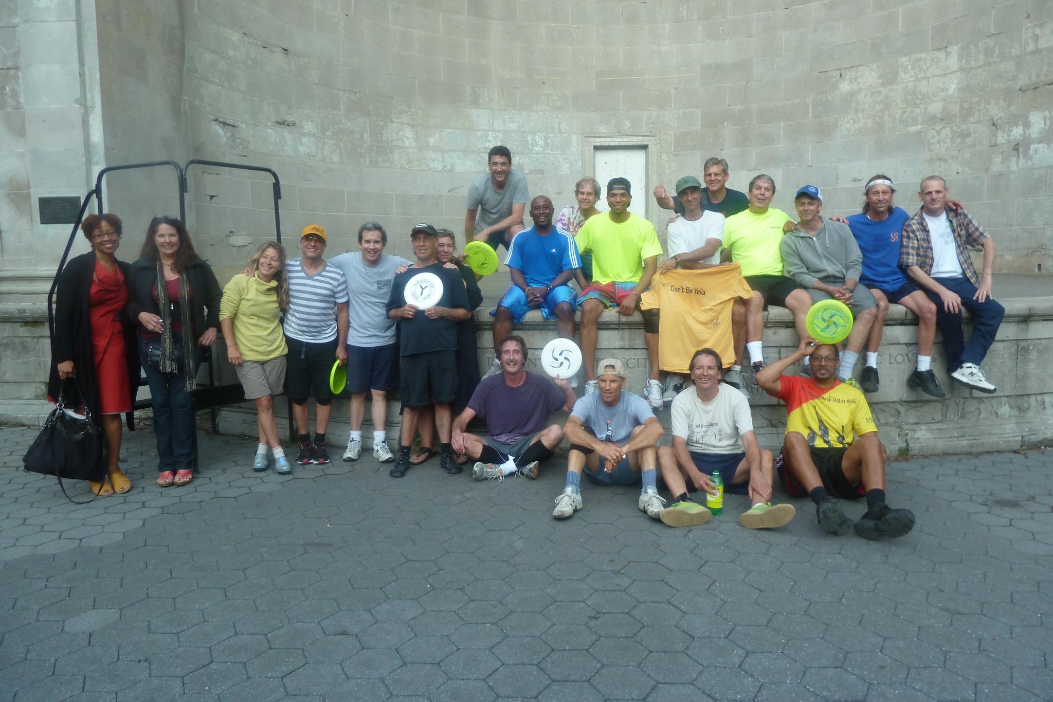 The weather cooperated but the Parkies did not. Red Flags hung limply over the Meadow because they decided to put down some pesticide/fungicide stuff. This meant heading over to the Bandshell once again. This was tough on Z’s knees, but any A*TGJI Honoree is automatically inducted into the Hard Corps of the Big Apple. That means that hthey don’t need no stinkin’ conditions to Shred. So the Concrete Jungle Jam was on and boy, did we have some surprises in store. First of all, Gary A. came back, making his own bid to enter the Alan Caplin Frequent Flyer Club. Also on hand were TedShred n’ TLC, Robbie-Rob, Bradford T., Quinn-O, (not so) Young Daniel, Jaime-TJH, Alex Heaver, JB n’ Sarah, Emma, Ivan-TJH n’ Amanda, The Reliable One, Chuck, The Oracle, and Flute Playin’ Roger rounding out the regulars. To top it off, J-Will made his second A*T appearance of 2012 and the Brooklyn’s own Kimberly Steger made my day by stopping by. Man, are we a lucky bunch.