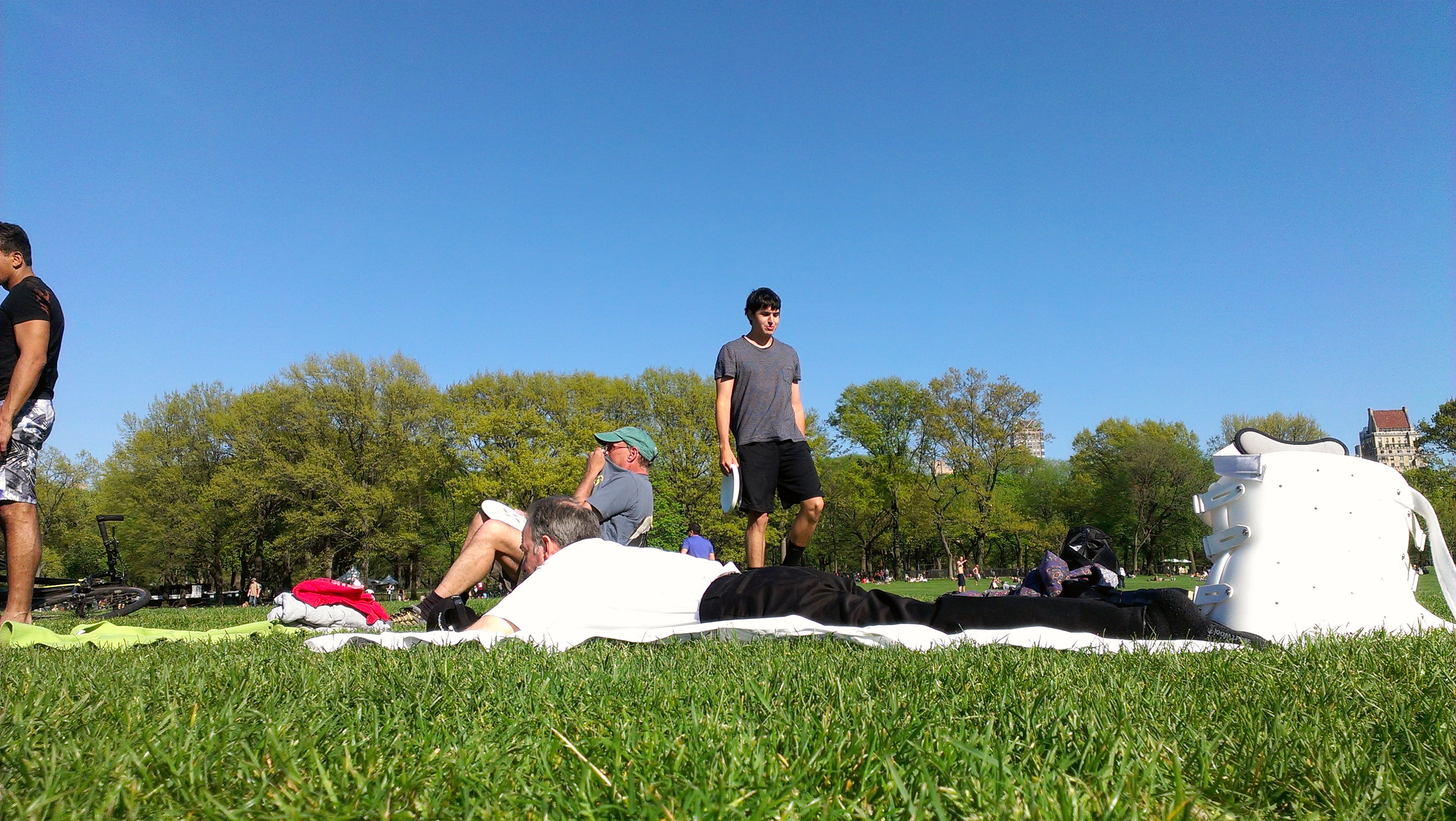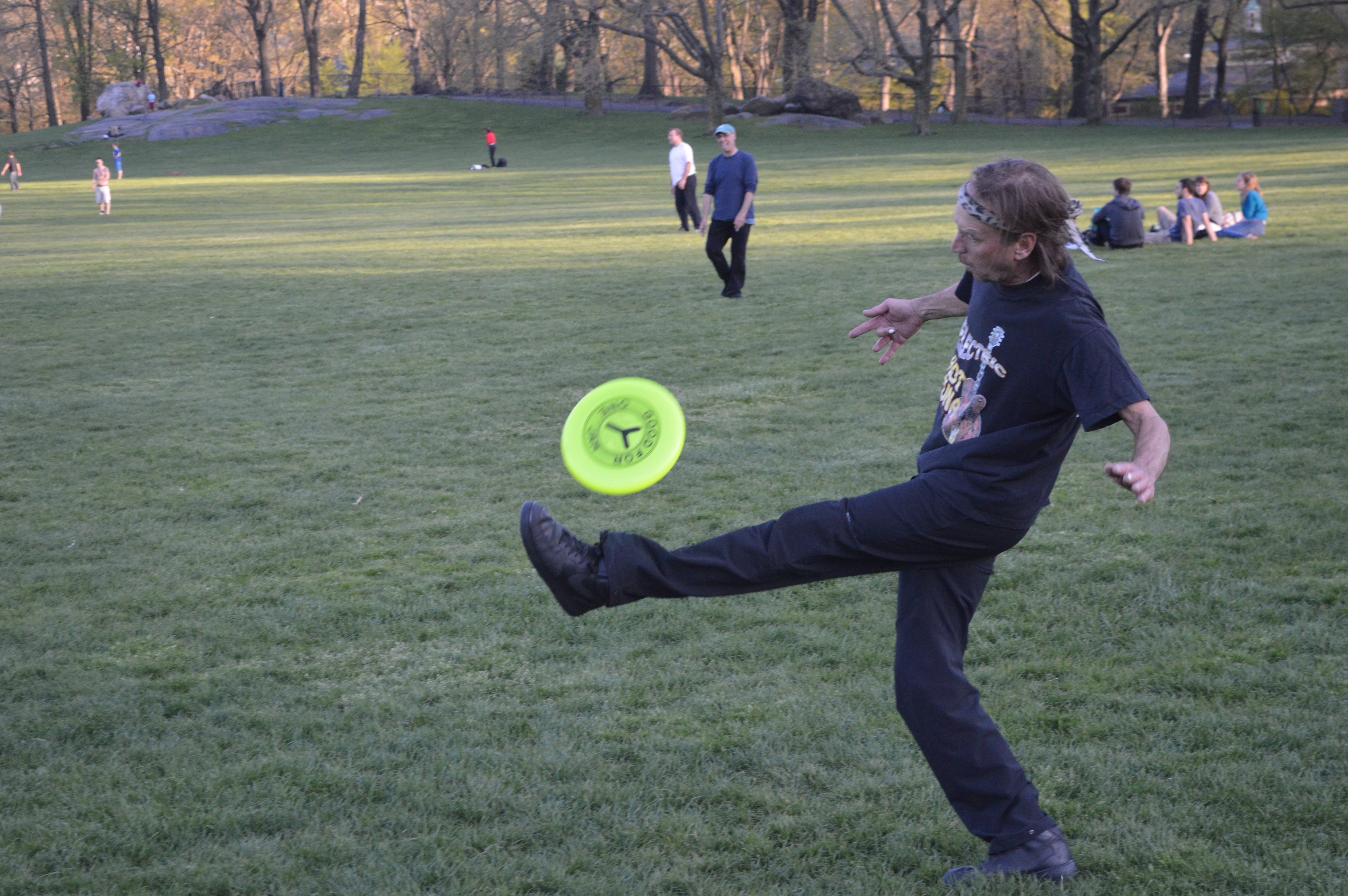 It was a gray Thursday back some ten days ago. The talk was of more rain and the Meadow was open. I stared with some lust at the vast emptiness of our Green Beach, yet the idea of planting on wet grass and starting to Jam was less than appealing. Thus I soldiered on to the Bandshell where I was met by James the Fully Bright, Quinn-O, JB, Bradford T., and Sir Charles of Kuske. Jaime-TJH arrived a bit later to say that he and Ben had the field to themselves, except for some lovely ladies doing a boot camp for inspiration. 😉 The Jamming was very good, in a “Punch the Clock” kind of way, and the number of people who were Yella-gible was quite significant.