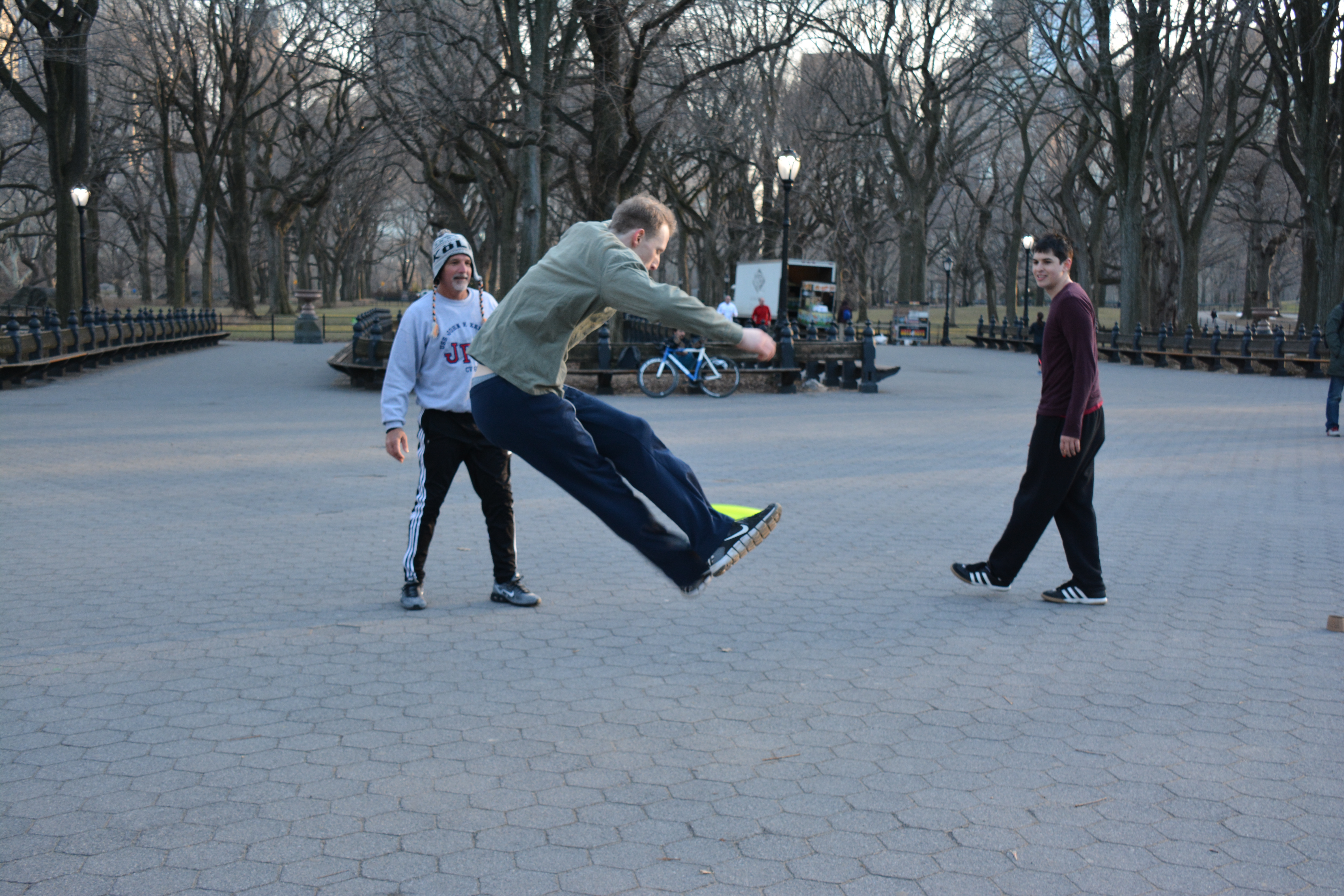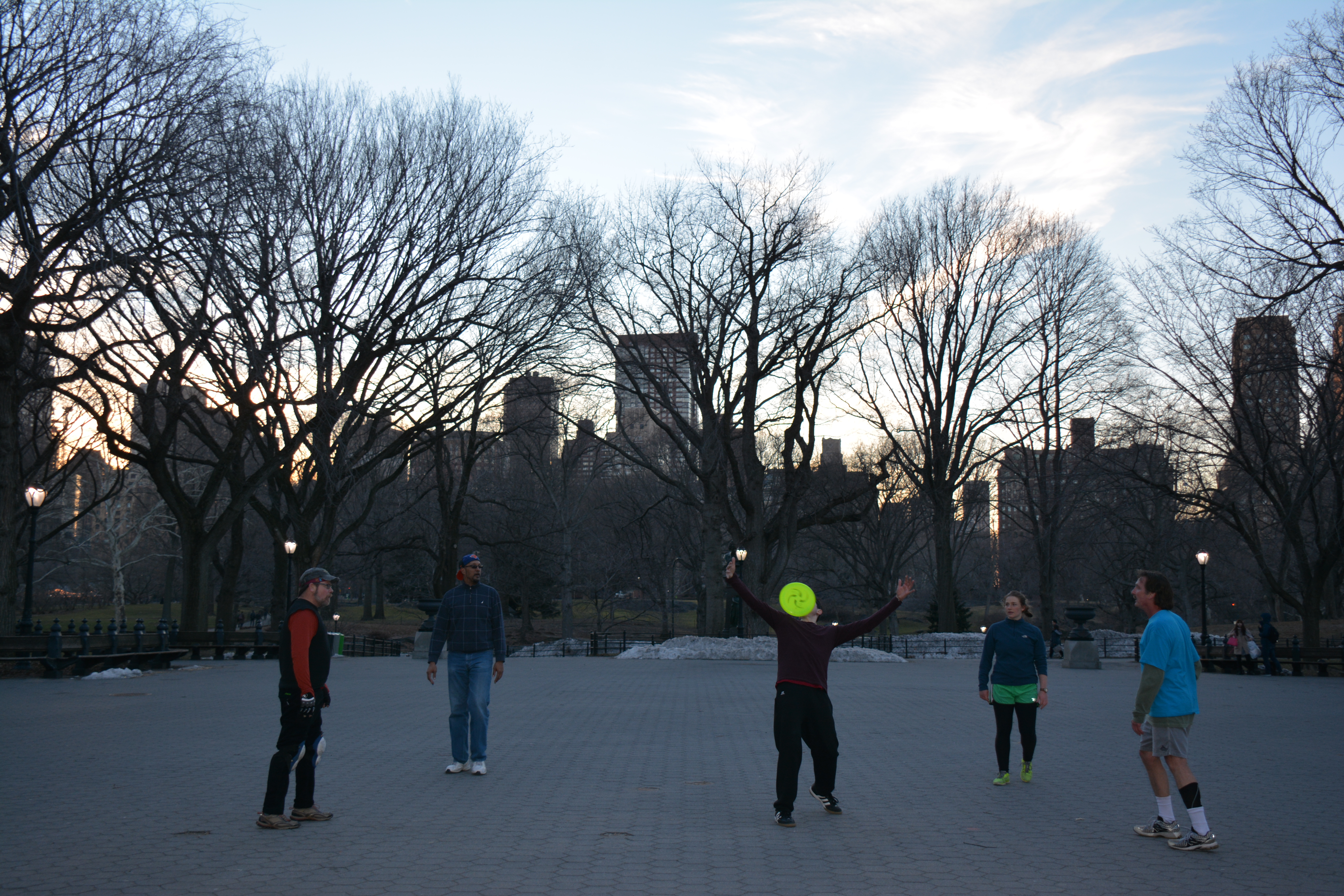 We started with a Mob-Op, which was the operative word of the day. PK, James, Daniel, LOOOOUUUU, Emma, TedShred, and me. This was unbelievable, especially at this time of year. There was much fancy passing and transcendent sealing, with everybody getting their chance at the disc. PK is a brilliant orchestrator, knowing exactly when and where to pass the disc, or if it is time to crush a Scarecrow and start with a new throw. Daniel has added elements of self-assured physicality to his game through his training with Pilobolus, Emma still has “Big Dog Inside”, and James has developed a sense of touch that allows him to manipulate the disc in ways that defy the laws of physics. Lou has been in the lab too, chomping new catches and heckling with abandon. All that plus TedShred?! Oh Man, this was just great!